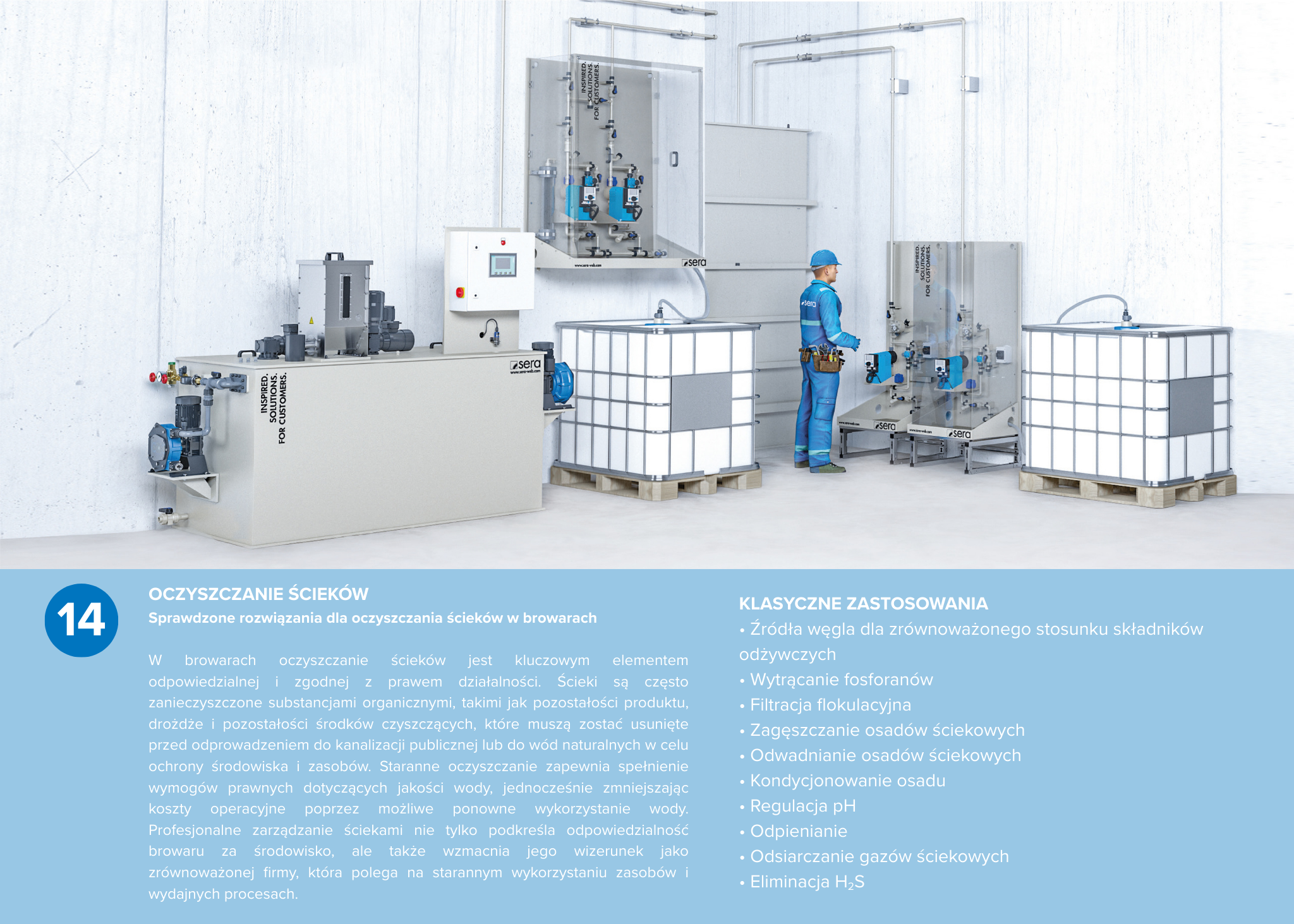 Szeroka gama produktów SERA obejmuje pompy dozujące i transferowe, standardowe systemy dozujące i jednostki, a także niestandardowe rozwiązania systemowe i jednostkowe, które zostały specjalnie opracowane do następujących zastosowań: