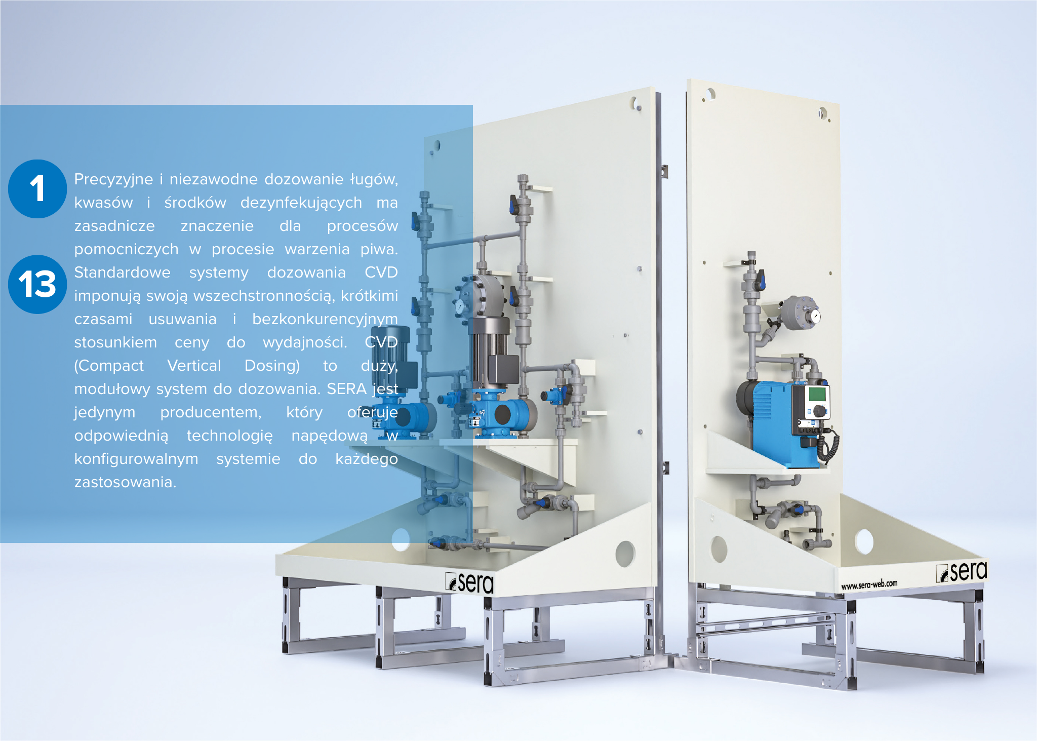 Od dziesięcioleci pompy SERA i systemy dozowania są ważną i niezawodną częścią wielu browarów na całym świecie. Odgrywają one centralną rolę w zakładach odgrywają kluczową rolę w zakładach produkcyjnych i wspierają niezmiennie wysoką jakość piwa dzięki swojej precyzyjnej i niezawodnej wydajności.